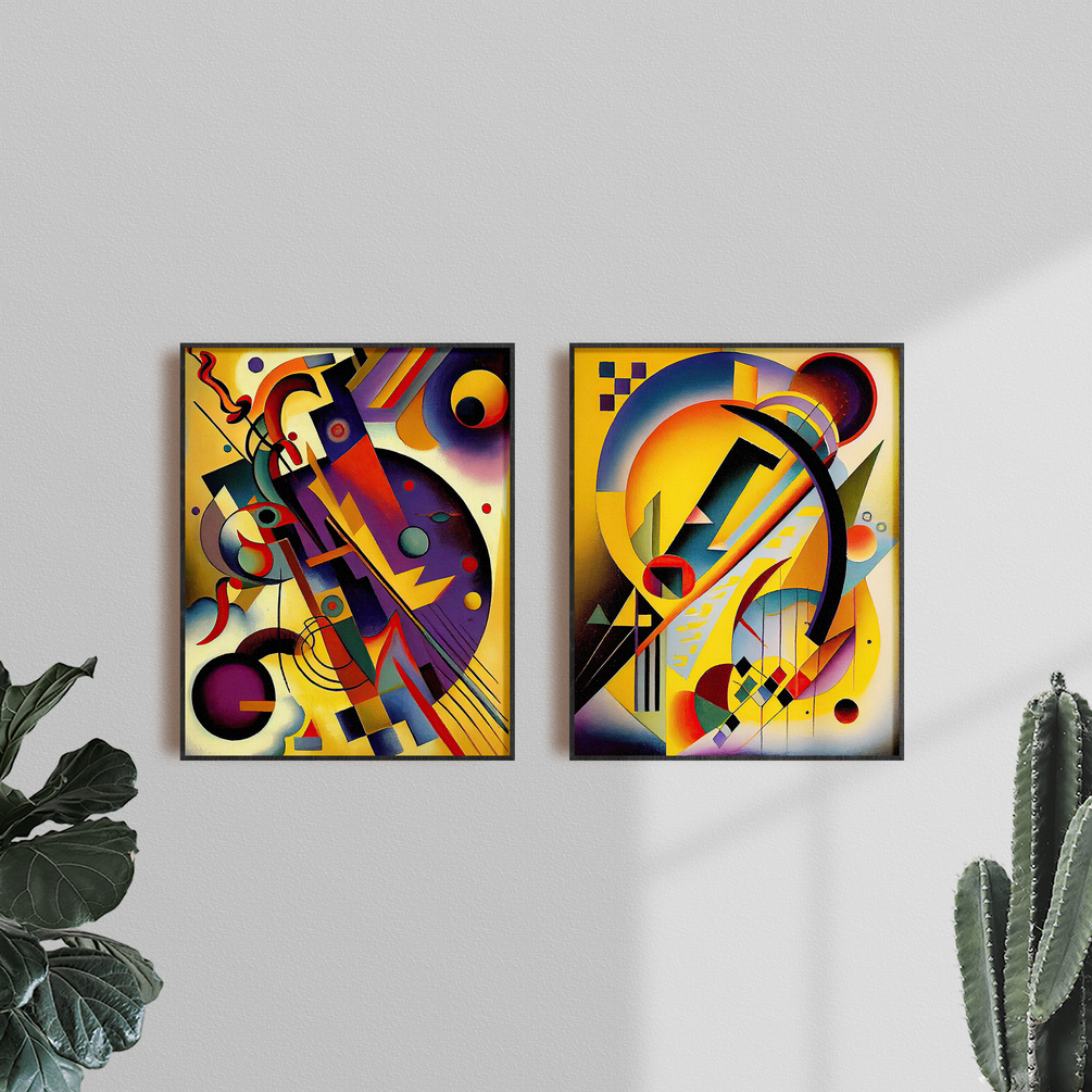 Abstract Geometric Painting V1 Downloadable Art Print 2 Set - Printable Wall Decor, Abstract Geometric Pattern Digital Poster Wall Art